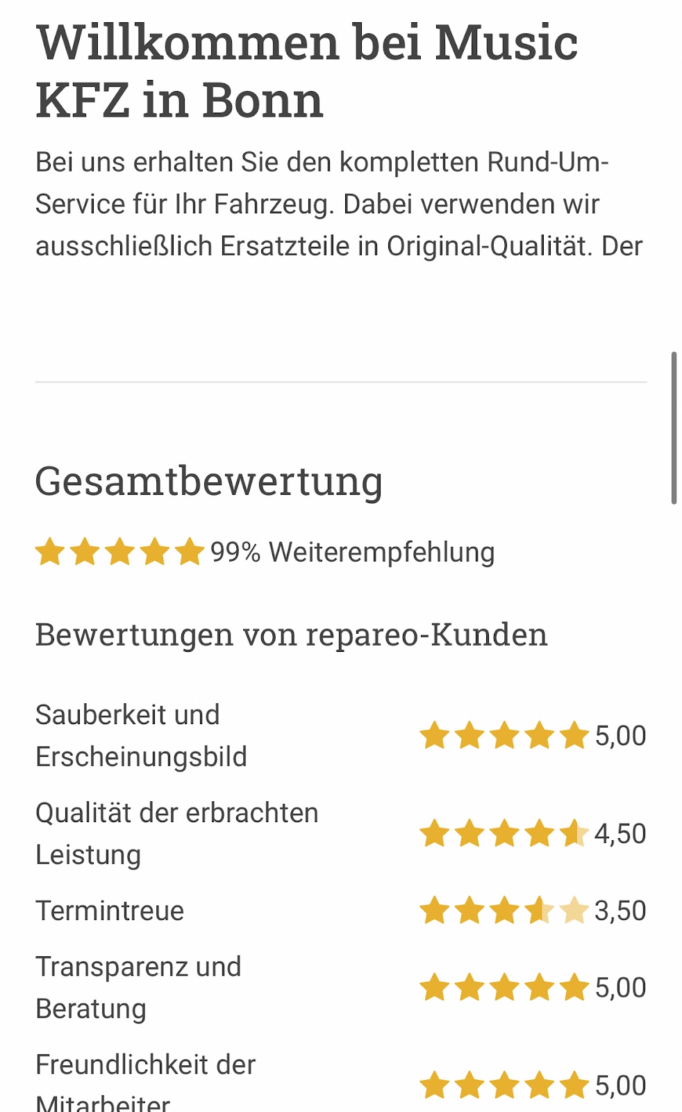 Optimiert für Suchbegriffe wie: "KFZ-Werkstatt Bonn", "Autoreparatur Bonn", "Werkstatt mit Top-Bewertung", "Music KFZ-Service", "Profimechaniker Bonn"