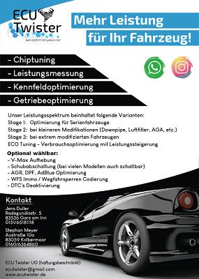 **ECU Twister – Ihr zuverlässiger Partner für KFZ-Dienstleistungen in Mühldorf a. Inn** Die **ECU Twister KFZ-Werkstatt** in der **Radegundisstraße 5, 83536 Mühldorf a. Inn**, überzeugt mit **höchster Qualität, modernster Technik und exzellentem Kundenservice**. Mit einer **5,0-Sterne-Bewertung** steht die Werkstatt für **Präzision, Transparenz und Langlebigkeit** bei allen Reparaturen und Leistungen. ### **Unsere Leistungen:** ✔ **ECU-Tuning & Leistungsoptimierung** – Individuelle Chip-Tuning-Lösungen für mehr Fahrspaß und Effizienz ✔ **Diagnose & Fehlerbehebung** – Schnelle und genaue Fehleranalyse mit modernster Auslesetechnik ✔ **Inspektionen & Wartung** – Langlebige Pflege für Ihren Motor nach Herstellerangaben ✔ **Bremsen- & Fahrwerksservice** – Sicherheit durch professionelle Bremsen- und Federungschecks ✔ **Klimaservice & AU** – Zuverlässige Abgasuntersuchungen und Klimaanlagenwartung ### **Warum ECU Twister wählen?** 🔧 **Experten mit Leidenschaft** – Fachkundige Mechaniker mit langjähriger Erfahrung ⚡ **Moderne Ausstattung** – Hochwertige Diagnosegeräte für präzise Reparaturen 💡 **Fair & transparent** – Klare Kostenvoranschläge ohne versteckte Gebühren 🚗 **Kundenorientiert** – Individuelle Beratung und schnelle Terminvergabe Vertrauen Sie der **Top-bewerteten KFZ-Werkstatt in Mühldorf a. Inn** – **ECU Twister** steht für **Qualität, Zuverlässigkeit und faire Preise**. Vereinbaren Sie jetzt einen Termin und erleben Sie exzellenten Service! 📍 **Adresse:** Radegundisstraße 5, 83536 Mühldorf a. Inn ⭐ **5,0 Sterne Bewertung – Kunden vertrauen unserer Arbeit!** #KFZWerkstatt #ECUTuning #Mühldorf #Autoreparatur #Kundenzufriedenheit