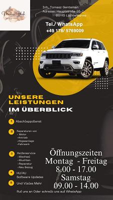 **Martini's Kfz-Service GmbH & Co. KG – Premium-Autoreparaturen in Cochem-Zell (4,9/5 ⭐)** Martini's Kfz-Service GmbH & Co. KG ist die erste Adresse für zuverlässige Kfz-Wartung und Reparaturen in **56759 Cochem-Zell**. Mit einer **exzellenten Bewertung von 4,9 Sternen** überzeugt die Werkstatt in der **Wilhelm-Conrad-Röntgen-Straße 22** durch **höchste Qualität, faire Preise und kundenorientierten Service**. ### **Umfassende Kfz-Dienstleistungen für alle Marken & Modelle** Das erfahrene Team von Martini's Kfz-Service bietet: ✔ **Inspektionen & Wartung** – Langlebigkeit und Sicherheit für jedes Fahrzeug ✔ **Bremsenservice & Reifenwechsel** – präzise Montage mit modernster Ausrüstung ✔ **Motordiagnose & Reparaturen** – schnelle Fehleranalyse mit modernster Technik ✔ **Achsen-, Getriebe- & Kupplungsarbeiten** – präzise Instandsetzung für beste Fahrdynamik ✔ **HU/AU-Vorbereitung** – sorgenfreie TÜV-Abnahme ohne Mängel ### **Warum Kunden Martini's Kfz-Service wählen:** ✅ **Meisterbetrieb mit langjähriger Erfahrung** – Handwerk auf höchstem Niveau ✅ **Transparente Beratung & faire Preise** – keine versteckten Kosten ✅ **Moderne Werkstattausstattung** – effiziente und präzise Reparaturen ✅ **Kundennähe & Terminflexibilität** – schnelle Hilfe bei Pannen oder Notfällen Vertrauen Sie Ihren Wagen den **KFZ-Experten in Cochem-Zell**! Martini's Kfz-Service GmbH & Co. KG garantiert **professionelle Autoreparaturen mit Bestnoten in Kundenzufriedenheit**. **🚗 Jetzt Termin vereinbaren unter: [Telefonnummer einfügen] | Wilhelm-Conrad-Röntgen-Straße 22, 56759 Cochem-Zell** *Ihre zuverlässige Kfz-Werkstatt in der Eifel – Martini's Kfz-Service: Qualität, die überzeugt!* 🔍 **SEO-optimierte Keywords:** *KFZ-Werkstatt Cochem-Zell, Autoreparatur, Inspektion, Bremsenservice, TÜV Vorbereitung, Kfz-Meisterbetrieb, Pannenhilfe, Reifenwechsel, Motordiagnose, zuverlässige Werkstatt, Wilhelm-Conrad-Röntgen-Straße*