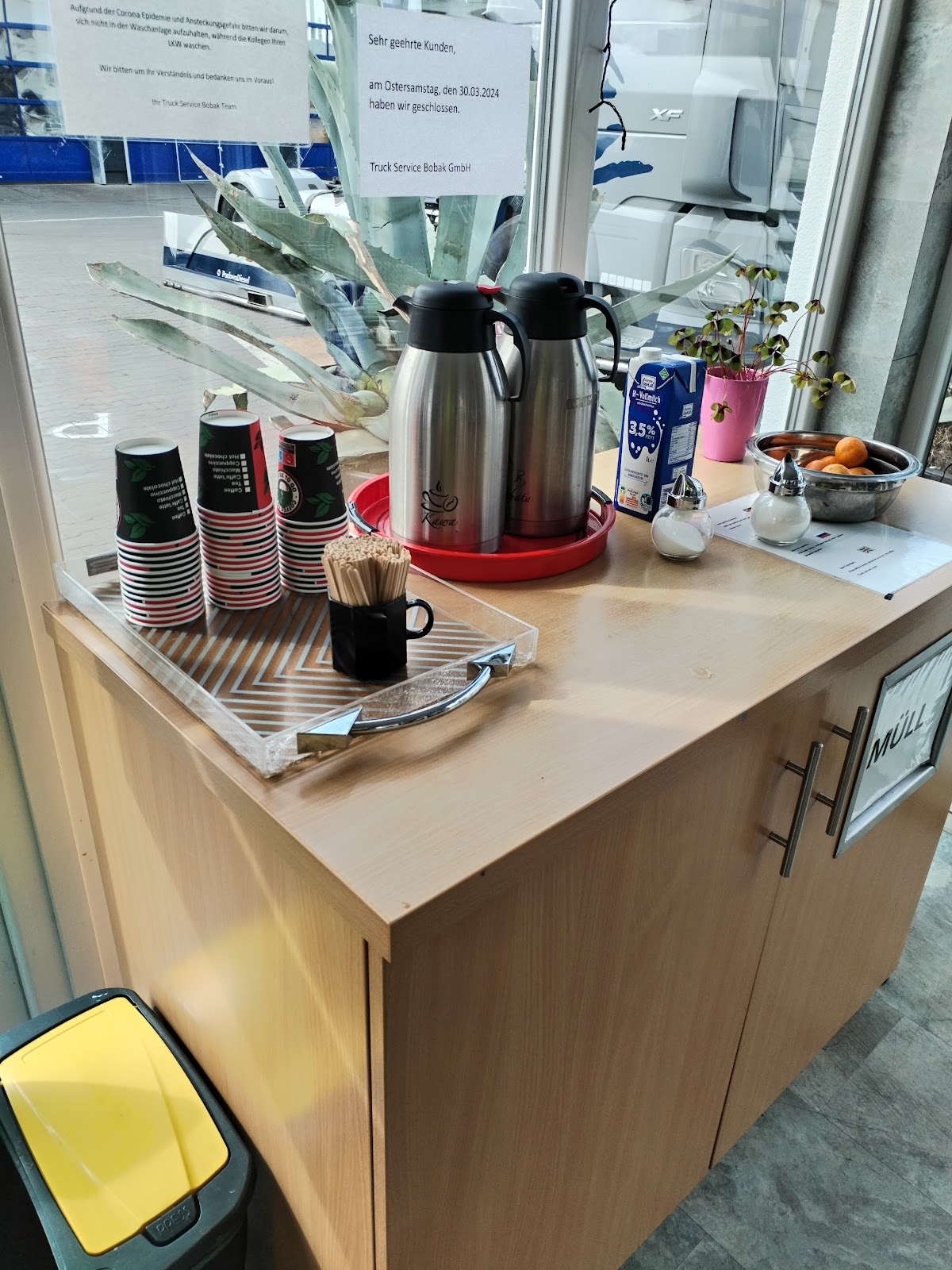 Wir waren am Donnerstag den 10.08.2023 in der Werkstatt angekommen als Neukunde. Nach erfragen der Zahlungsübernahme oder Zahlungsfähigkeit wurde unsere Fahrzeug ein DAF XF mit einem Wasserpumpen Schaden in der Zeit von 08:00 Uhr bis 12:00 Uhr wieder Instand gesetzt. Wir waren mehr als zufrieden mit dem Kundeservice. Für das leibliche Wohl der Kunden ist auch gesorgt. Wie oben schon einer schrieb sind dort zwar Menschen beschäftigt die kaum deutsch sprachen, aber Sie machen eine klasse Arbeit und sind sehr freundlich. Und wenn Menschen die Webseite des Unternehmen lesen würden, würde man sehen das der Geschäftsführer einen Deutschlehrer sucht. Alles im allem bin ich mir fast sicher das mein Chef in Zukunft diese Werkstatt vorziehen wird nachdem was ich ihm berichtet habe. Vielen Dank an das gesamte Team und den lustigen Meister der immer einen COOLEN Spruch auf Lager hatte um die Wartezeit so angenehm wie möglich zu machen. . Von uns 5 von 5 Sternen.