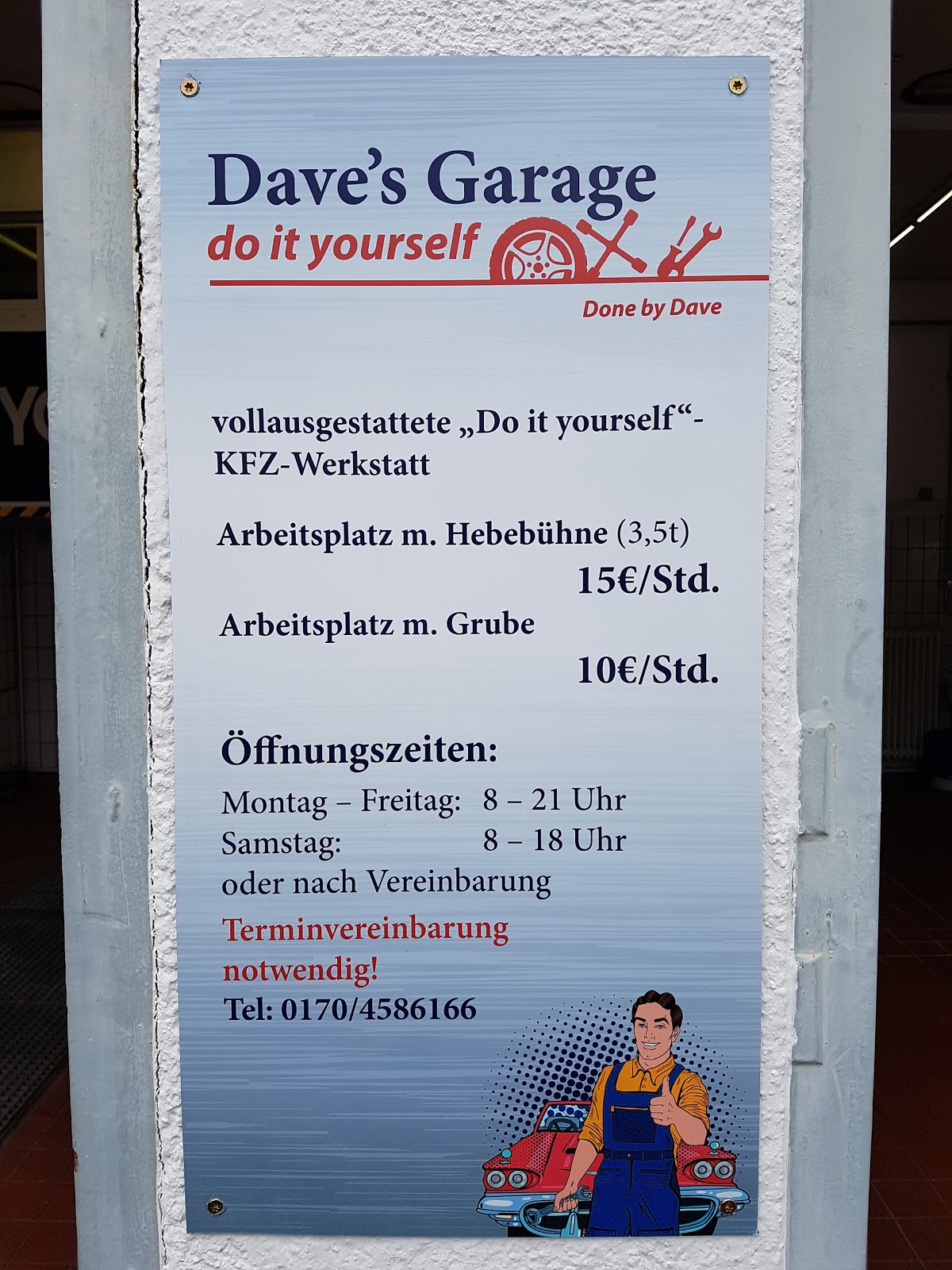 Super "do it yourself" Werkstatt. Termine nur nach telefonischer Vereinbarung. Alles vorhanden was das Schrauberherz braucht.